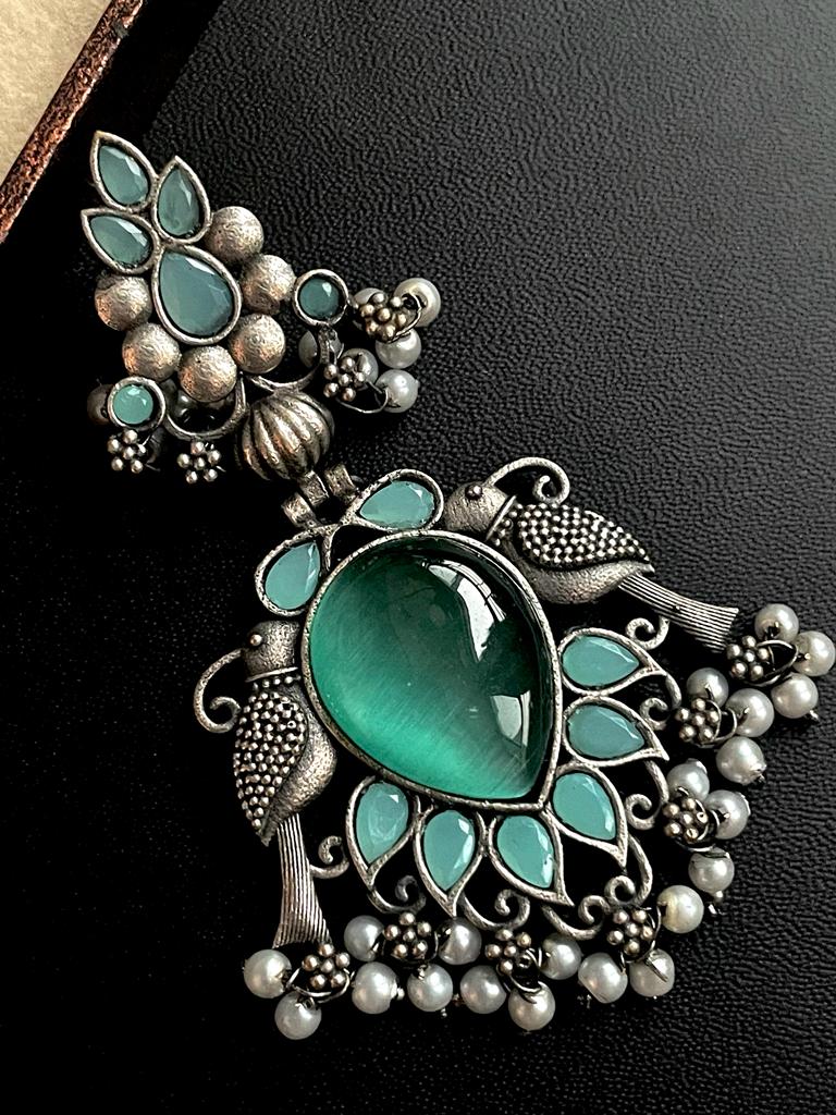Monalisa Stone Black Polish Brass Heavy Looking Earring