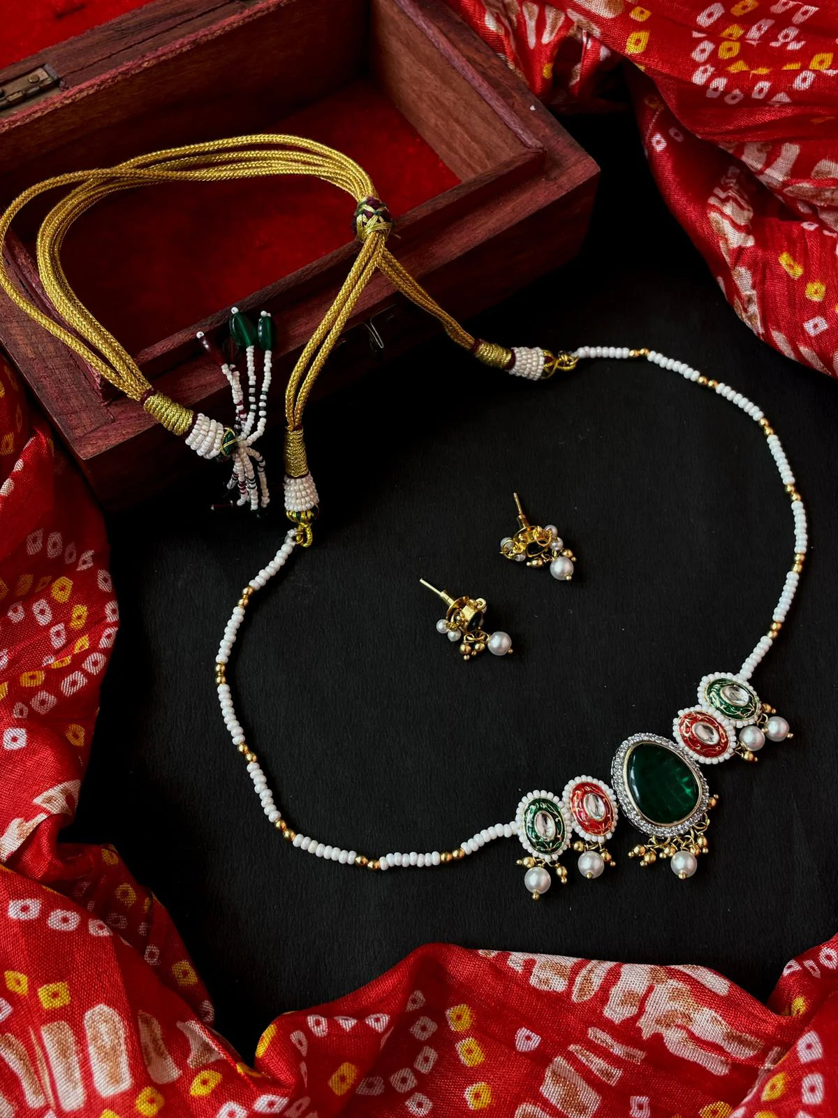 Monalisa Stone Meenakari Kundan Choker with Earring Set
