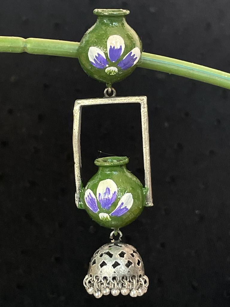 Pot Shape Oxidized Hand Painted Earring
